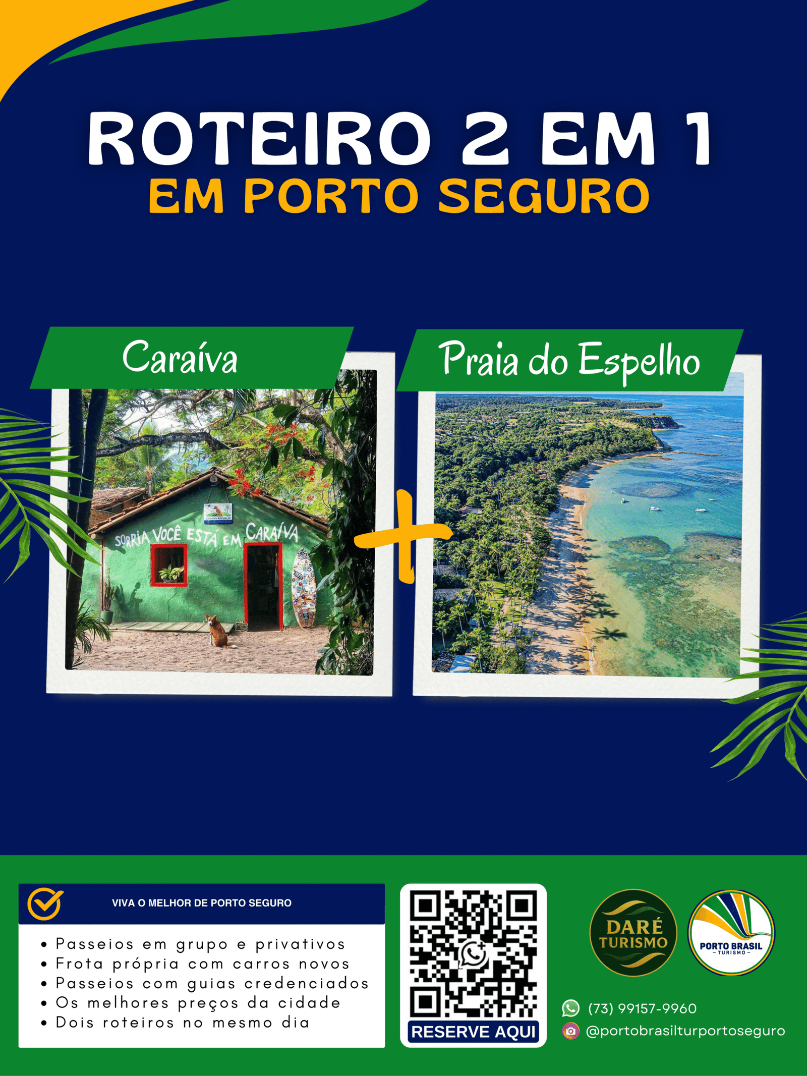 Descubra dois dos destinos mais encantadores do litoral sul da Bahia em um único dia: Caraíva e a famosa Praia do Espelho.